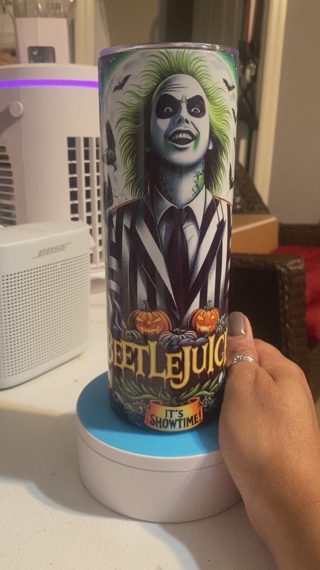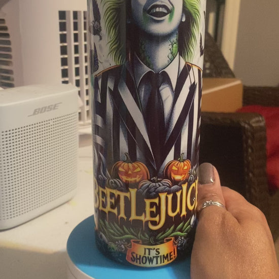 Stay hydrated in style with our Beetlejuice 20oz tumbler! This tumbler comes with a convenient straw and features the iconic Beetlejuice design. Perfect for on-the-go, keeping drinks cool and showing off your love for this classic movie.