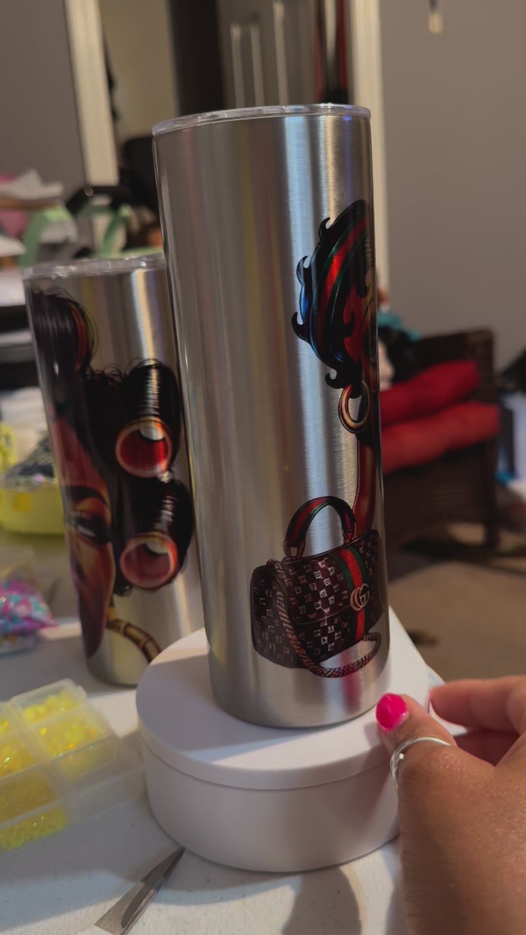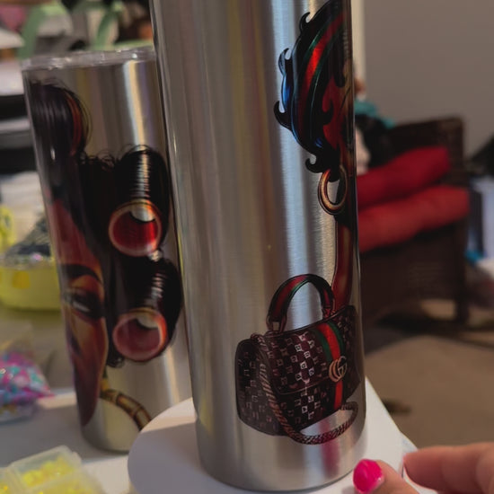 Indulge in luxury with our Betty Boop Gucci inspired tumbler. Made from stainless steel and featuring the iconic Betty Boop design, this 20oz tumbler is the perfect accessory for the fashion-forward and sophisticated individual. Stay stylish while keeping your drinks hot or cold - a must-have for any premium tumbler collection.