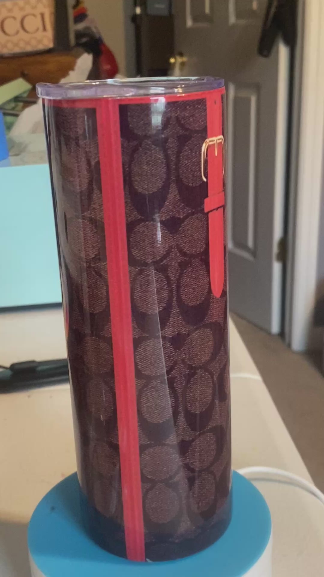 Coach inspired with red trim 20oz tumbler
