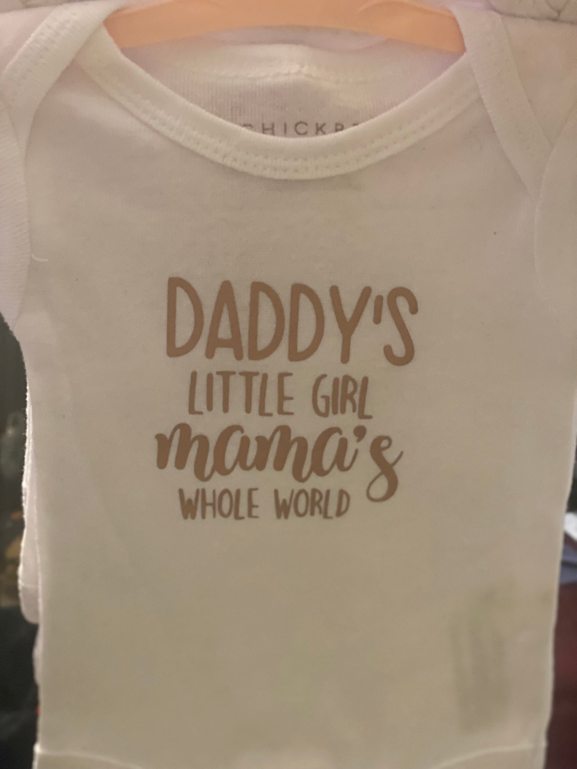 Make your little girl feel extra special with our Daddy's Little Girl Mama's Whole World onesie. Featuring a cute and charming design, this onesie will not only keep your baby girl comfortable and cozy, but also show the world just how loved she is. A must-have for any proud mama and doting daddy!