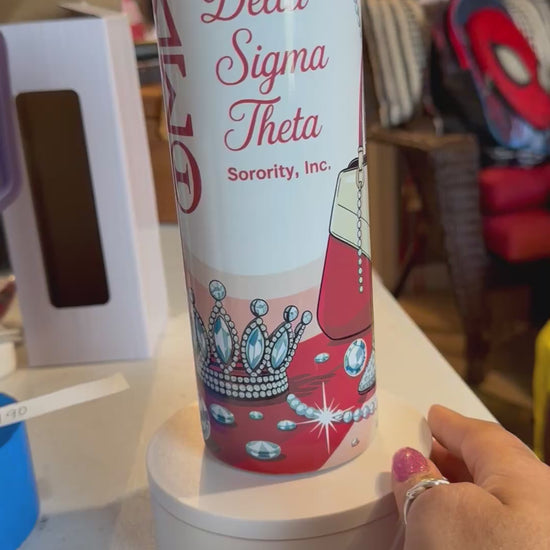 Keep your drinks at the perfect temperature with the Delta Sigma Theta 20oz tumbler. This stylish tumbler features the iconic Delta Sigma Theta logo and is perfect for on-the-go use. Stay hydrated while showing off your sorority pride.