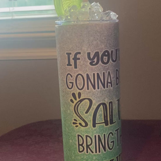 Get ready to sip in style with our "If your gonna be salty bring the tequila" 20oz tumbler! Featuring a custom ice lid, this tumbler is perfect for keeping your favorite drink cold while making a statement. Don't let the haters get you down, just bring the tequila and stay salty!