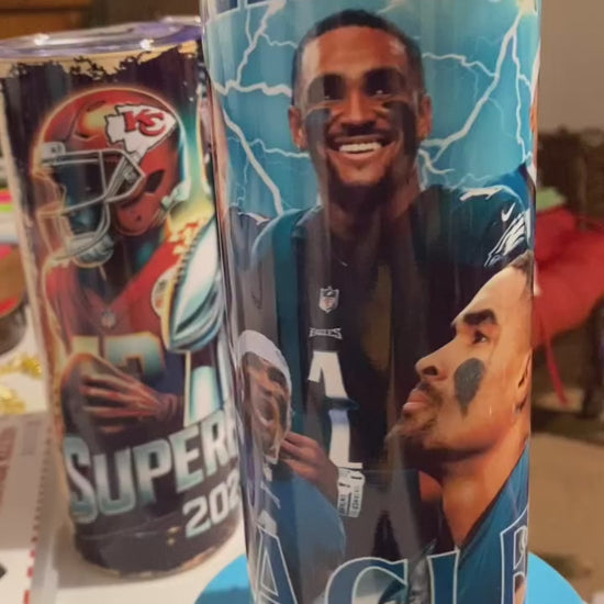 Stay hydrated in style with the Jalen Hurts 20oz tumbler. Made with quality materials, this tumbler keeps your drinks at the perfect temperature while showing off your love for Jalen Hurts. Perfect for on-the-go or lounging at home, it's a must-have for any fan!