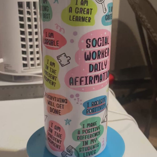 Stay hydrated and positive with our Social Worker Daily Affirmation tumbler! This 20oz tumbler comes with a straw and is designed with uplifting affirmations to brighten your day. Perfect for busy social workers on-the-go, this tumbler is a thoughtful gift that promotes self-care and positivity.