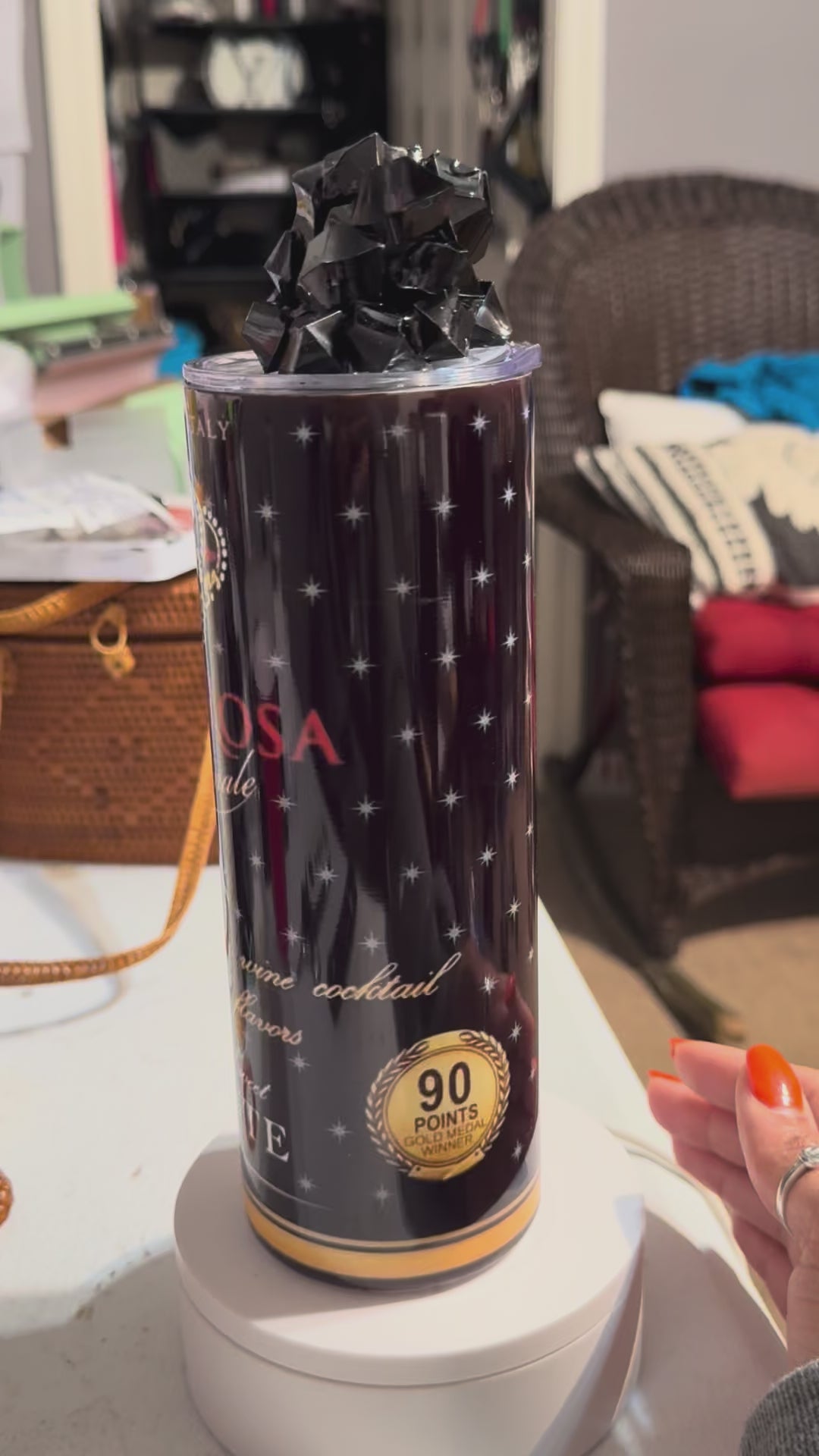 This Stella Rosa Black 20oz tumbler is the perfect accessory for any luxury lifestyle. The sleek design and 3D topper add a touch of sophistication to your drinking experience. Keep your favorite Stella Rosa wine at the perfect temperature while on the go, and make a statement at any event.