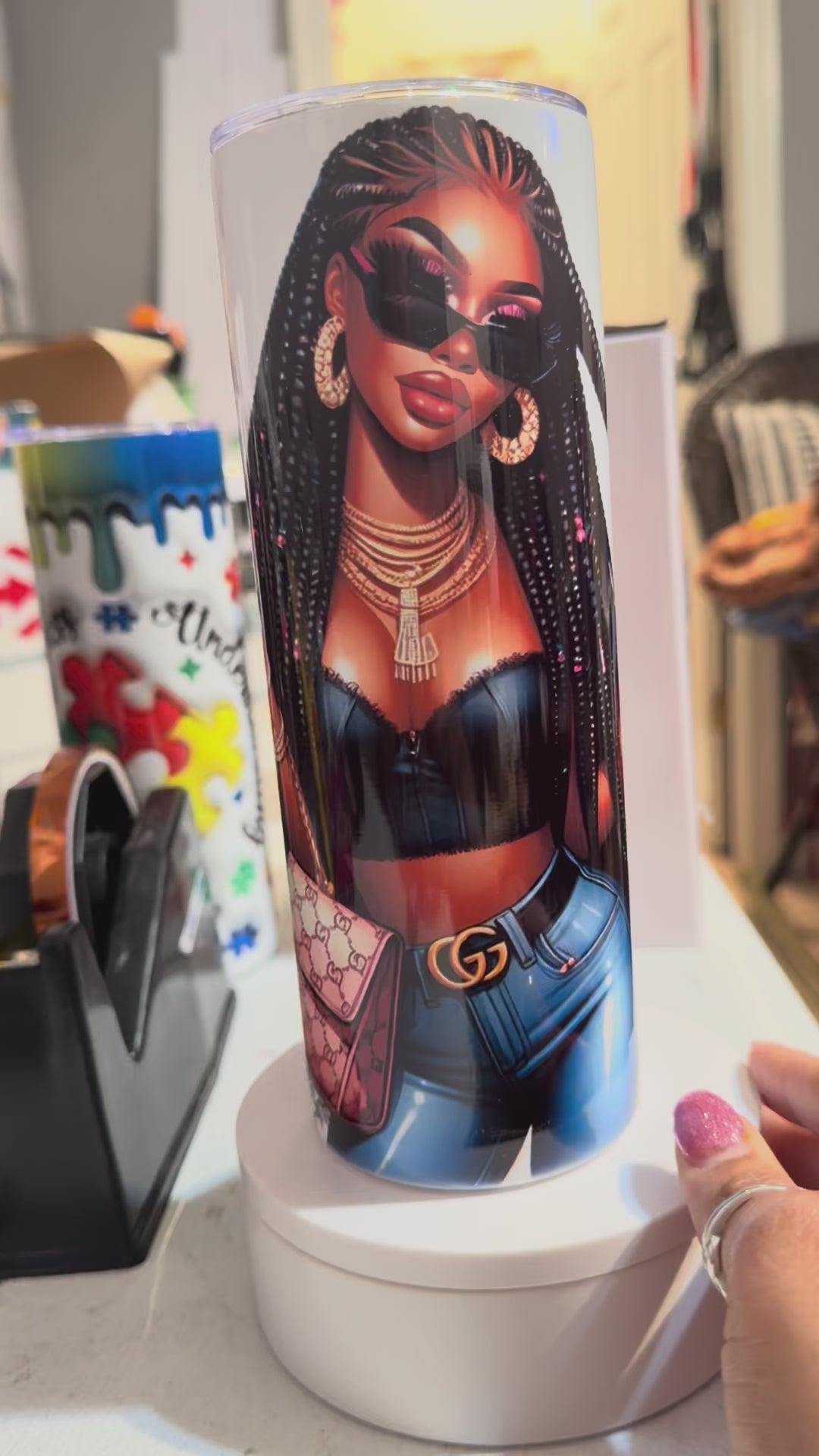 Indulge in the ultimate luxury with our stylish Gucci inspired tumbler. Featuring the iconic Gucci design, this tumbler is not just a functional piece, but a statement of sophistication and taste. Sip your favorite beverage in style and elevate your daily routine with this exclusive tumbler.