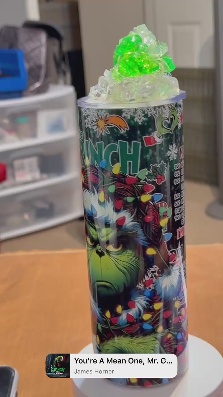 Experience the magic of The Grinch with our 20oz tumbler featuring a 3D topper. Keep your drinks at the perfect temperature while showcasing your love for this iconic character. Perfect for fans of all ages, this tumbler adds a touch of whimsy to your daily routine.