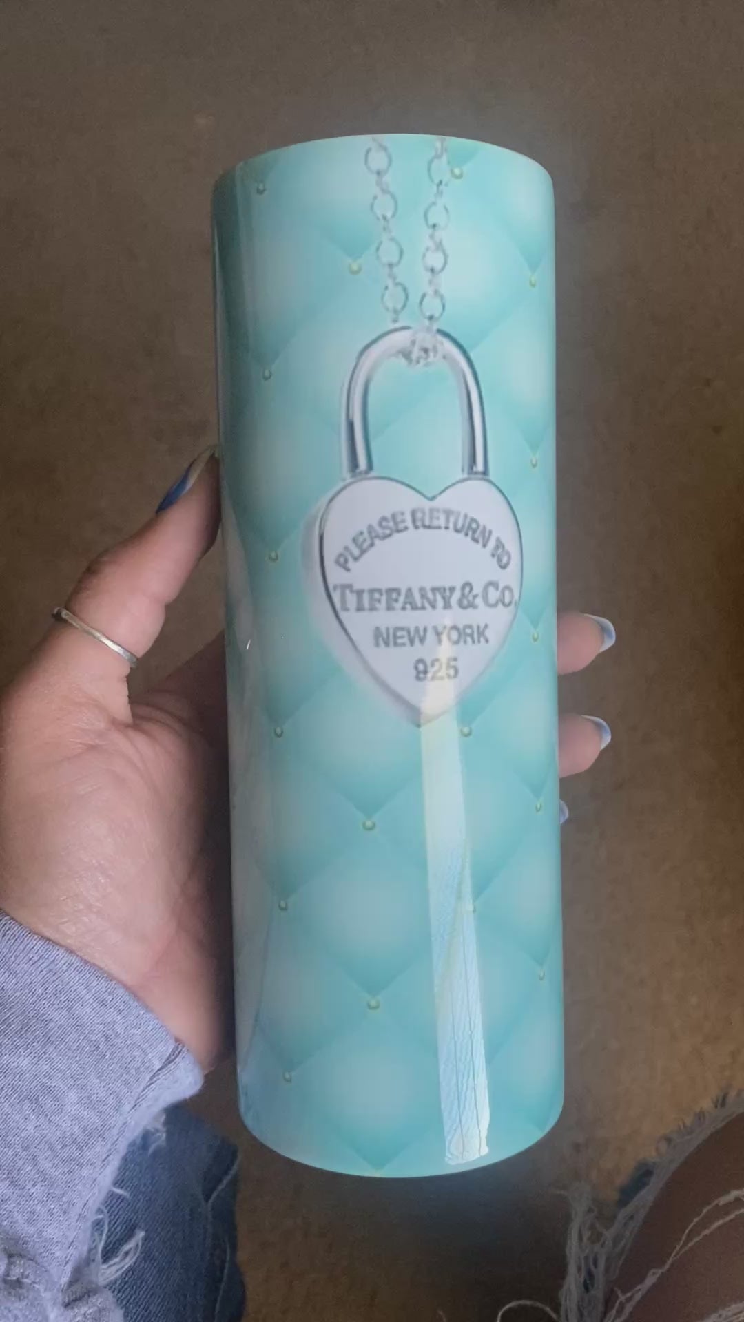 Indulge in luxury with our Tiffany & Co. inspired 20oz tumbler. Adorned with the iconic Tiffany blue color and intricate detailing, this tumbler will elevate your drinking experience. Keep your beverages hot or cold while showcasing your exquisite taste. Sip in style with this exclusive tumbler.