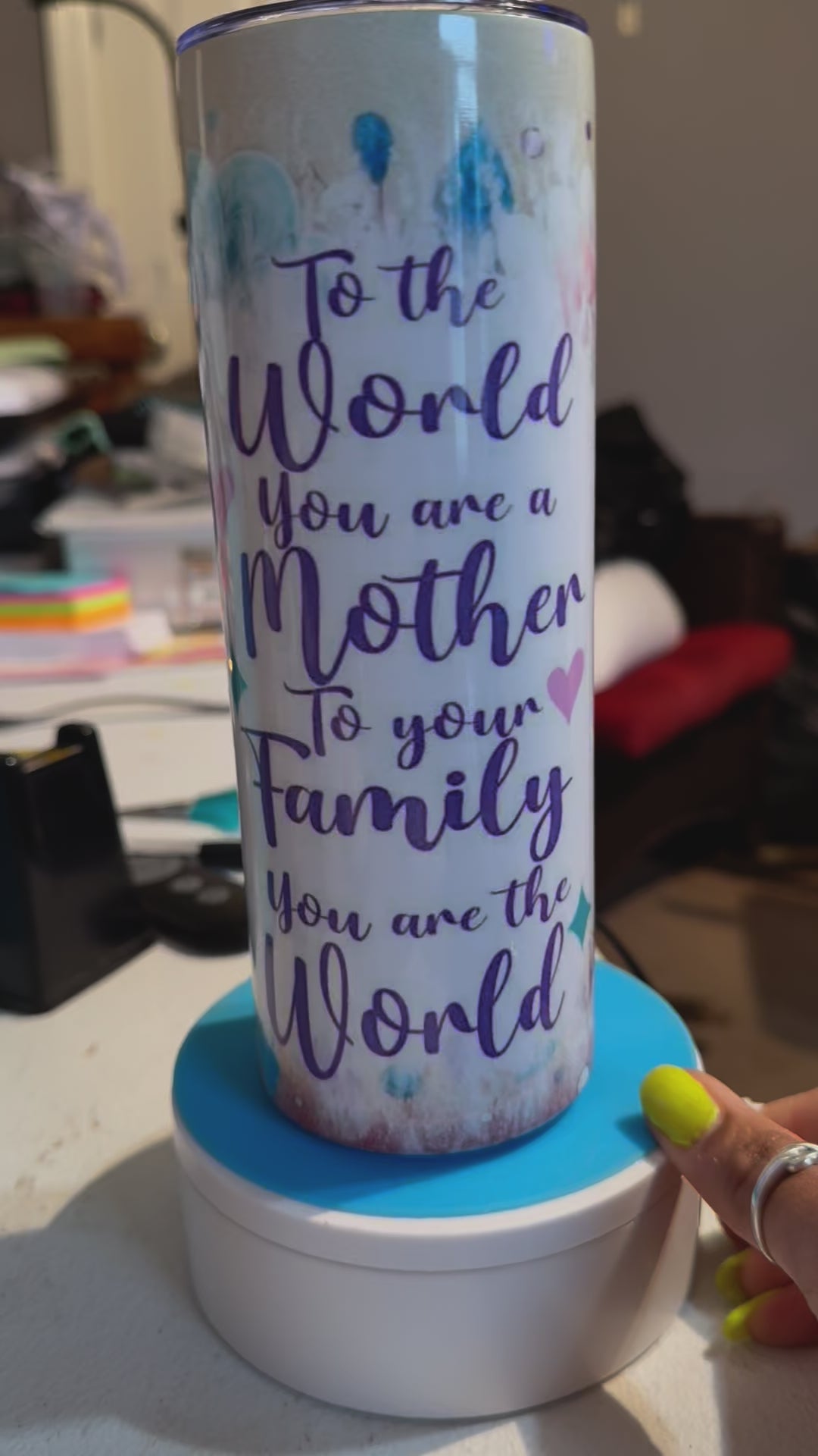 Celebrate the amazing moms in your life with our "To the World you are a Mother" 20oz tumbler. Perfect for holding your favorite drinks and reminding you of the important role you play in your family. Show your love and appreciation with this thoughtful gift.